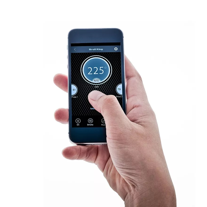 Der Broil King Pellet 500 Grillkörper ist aus 2mm dickem Stahl gefertigt und hat eine Primärkochfläche von 4032 Quadratzentimeter, eine Sekundärkochfläche von 1290 Quadratzentimeter und hochbelastbare gusseiserne Grillroste. Der Grill hat ein Gesamtgewicht von ca. 113 kg. Das Wifi- und Bluetoothfähige digitale Steuerelement bietet eine verbesserte Temperaturregelung für die Schnellwahltasten SMOKE, ROAST und GRILL. Das Display ist während des Grillens sehr einfach zu lesen. Der Pellet-Grill ist komplett ausgestattet mit einer leistungsstarken Förderschnecke, einem Pelletbehälter mit einem Fassungsvermögen von 9kg, einem herausnehmbaren Aschebehälter, einem Deluxe Rotisserie-Kit, 2 elektronischen Temperaturfühlern sowie einem Boden und Seitenregal.