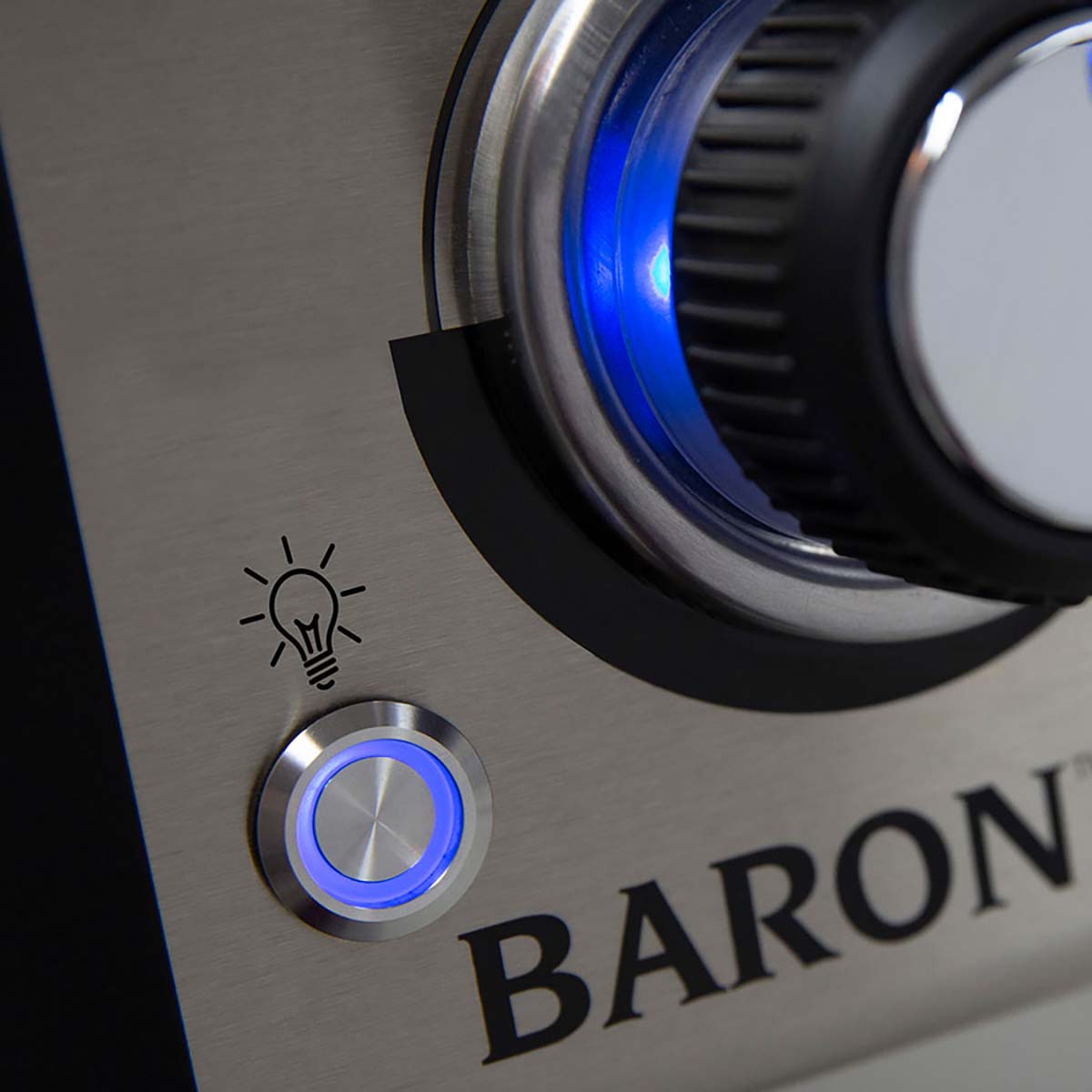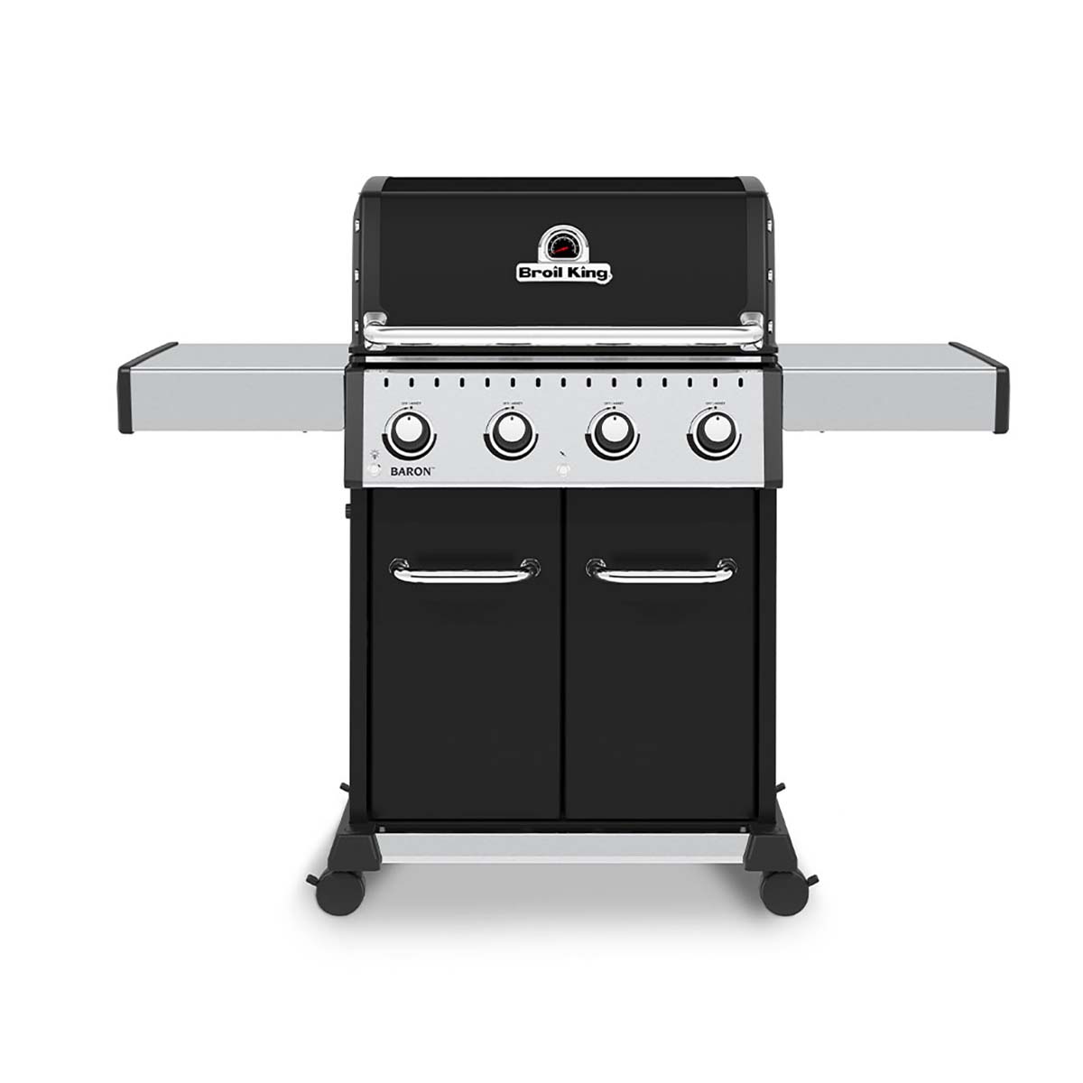 Der Broil King® Baron 420™ verfügt über eine Gesamtgrillfläche von 4.976 cm² und beidseitig verwendbaren gusseisernen Grillrosten, Warmhalterost, Flav-R-Wave™ Kochsystem aus Edelstahl und 4 Edelstahl-Dual-Tube™-Brennern, abklappbaren Edelstahl-Seitenablagen und einem geschlossenen Schrankunterteil.