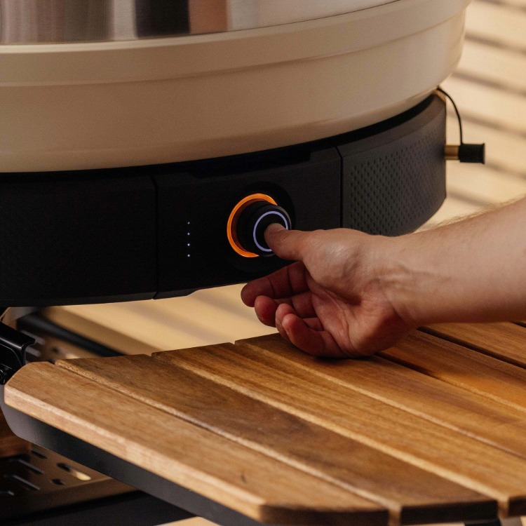 Dank wiederaufladbarer Akkus bleibt Ihr unabhängig und könnt lange kochen, ohne Unterbrechung. Das ist echtes Holzfeuer – nur smarter.
