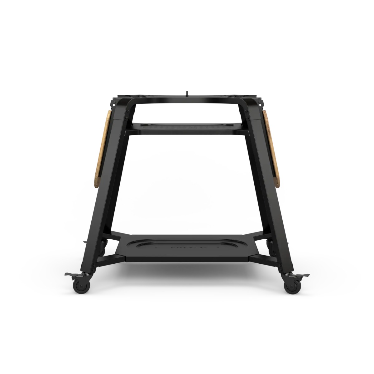 Dank Drehverschluss sitzt der Ofen fest und sicher auf optimaler Arbeitshöhe. Praktische Haken für Zubehör, stabile Ablagen und hochwertige Materialien machen das Gestell zu Eurem perfekten Zubehör.