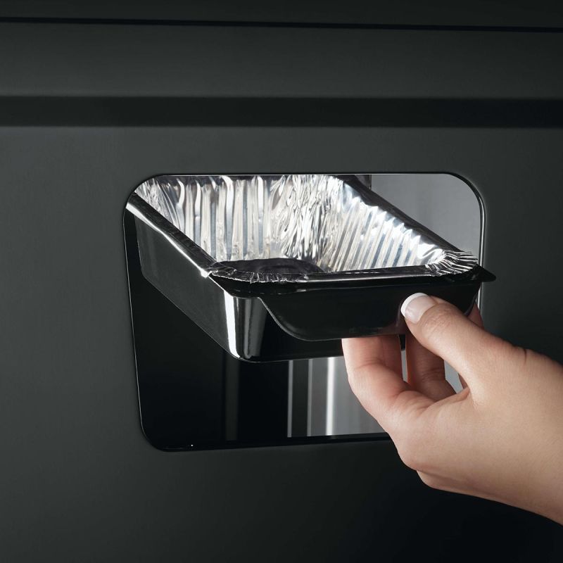Die matte Porzellan-Beschichtung des Deckels schützt vor Abnutzung, Fingerabdrücken und Wettereinflüssen, während die stilvolle Graphit-Optik dem Grill eine moderne, elegante Note verleiht. Zusätzlich erleichtert die seitlich entnehmbare Fettauffangschale die Reinigung erheblich.