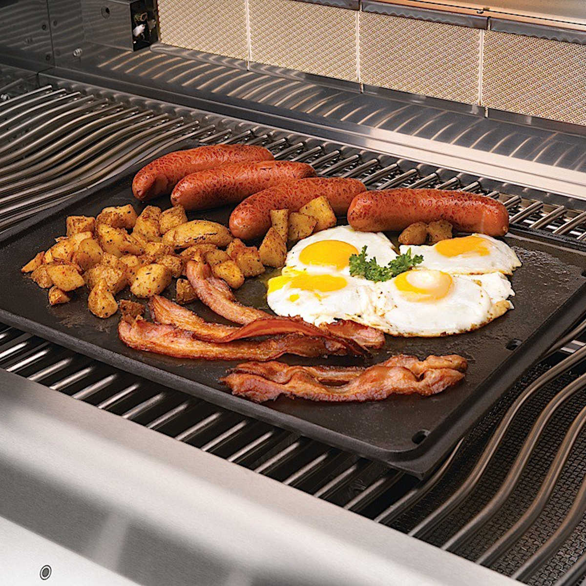 Die Wendeplatte von Napoleon Gourmet Grills gehört zum Must have für jeden Grillfan. Dank der besonderen Oberflächenstruktur lassen sich auf der glatten Seiten wunderbare Grillgemüse, Meeresfrüchte, Bacon oder Crêpes zubereiten.