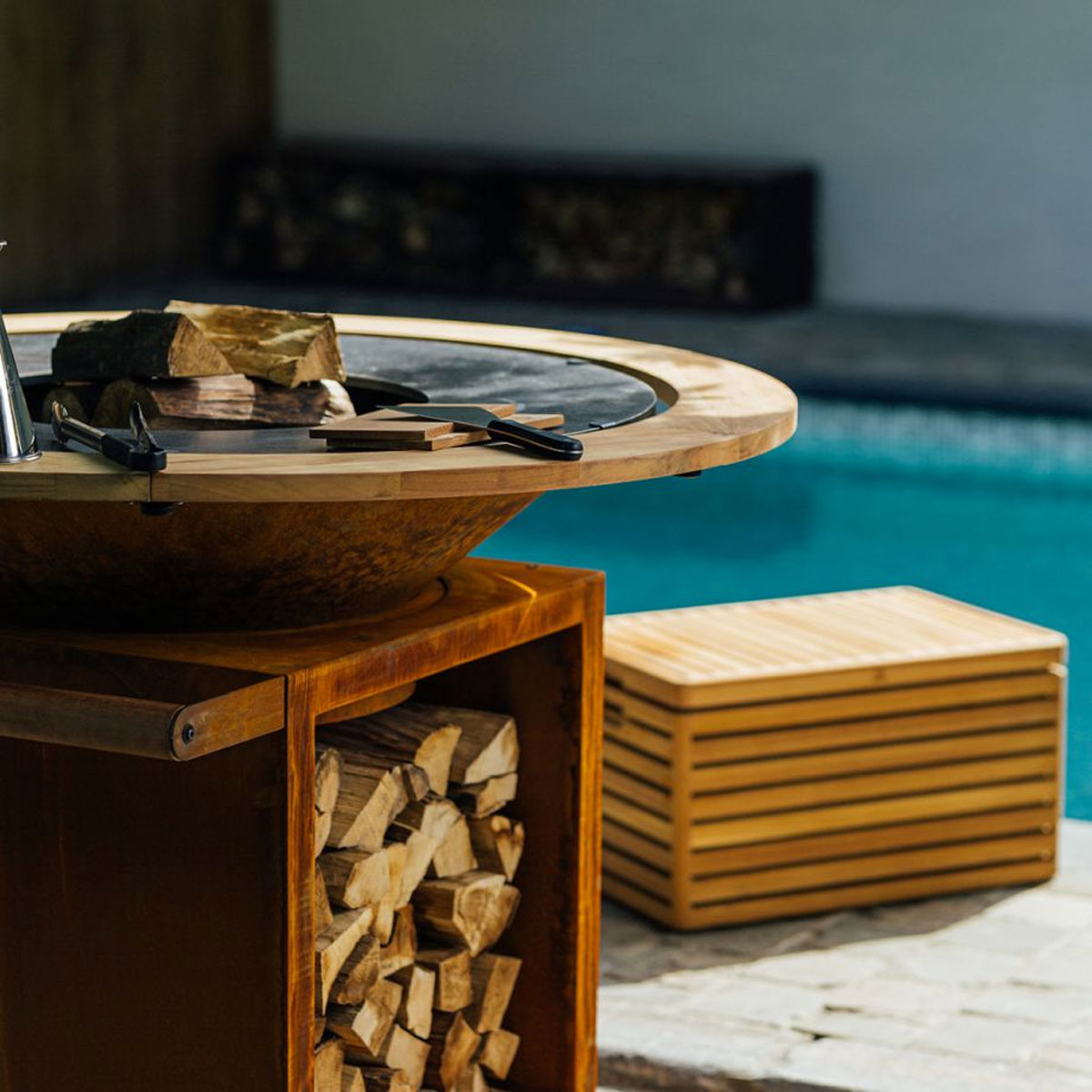 Maße (HxBxØ): 2,2 x 12,5 x 128 cm Material: Teakholz, geölt Material Halterungen: Stahl, beschichtet Gewicht: 7,8 kg Hinweis: Den Ring möglichst nicht dauerhaft im Freien belassen Passend für: Alle OFYR Feuerschalen mit einem Grillplatten-Durchmesser von 100...