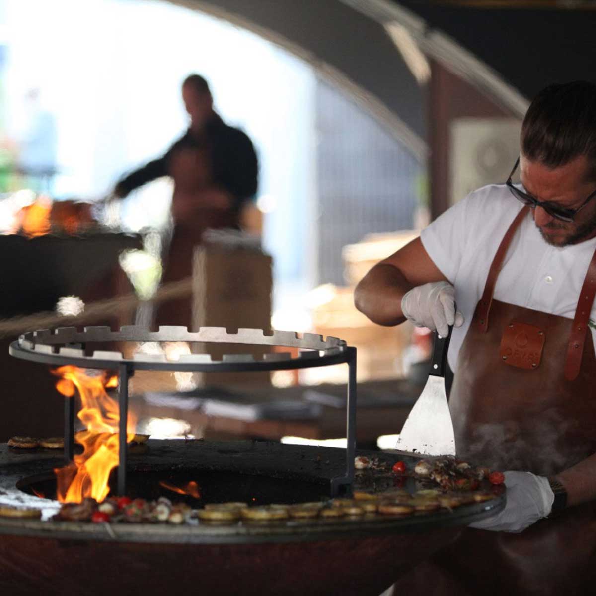 Auf diesem Grillring könnt Ihr Schaschlik und andere Spießgerichte auf der OFYR Feuerschale direkt über dem Feuer grillen – für reichlich Röstaromen und typisch rauchigen Flavour. Der massive Stahlring hat einen Durchmesser von 49 Zentimeter und ist kompatibel mit OFYR Grillhalterungen in der 100er Größe: Wenn Ihr bereits im Besitz eines OFYR Grillrosts 100 oder Brasilianischen Grillsets 100 seid, tauscht Ihr die Einsätze im Grillgestell einfach aus. In Kombination mit Spießen könnt Ihr Fleisch und Gemüse direkt über dem Feuer platzieren und brandheiß und blitzschnell auf den Punkt garen, Eure Zutaten erhalten beim Rösten über der offenen Flamme zusätzlich ein...OFYR Ring zum Einlegen in vorhandenes Grillgestell