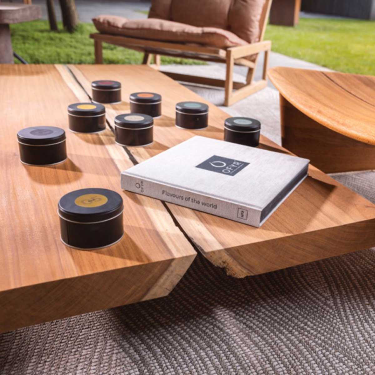 OFYR Kochbuch No.2 Set in der Geschenkbox, bestehend aus: OFYR “Flavours of the World” Deutsch & Englisch 8 Gewürzdosen mit Gewürzmischungen