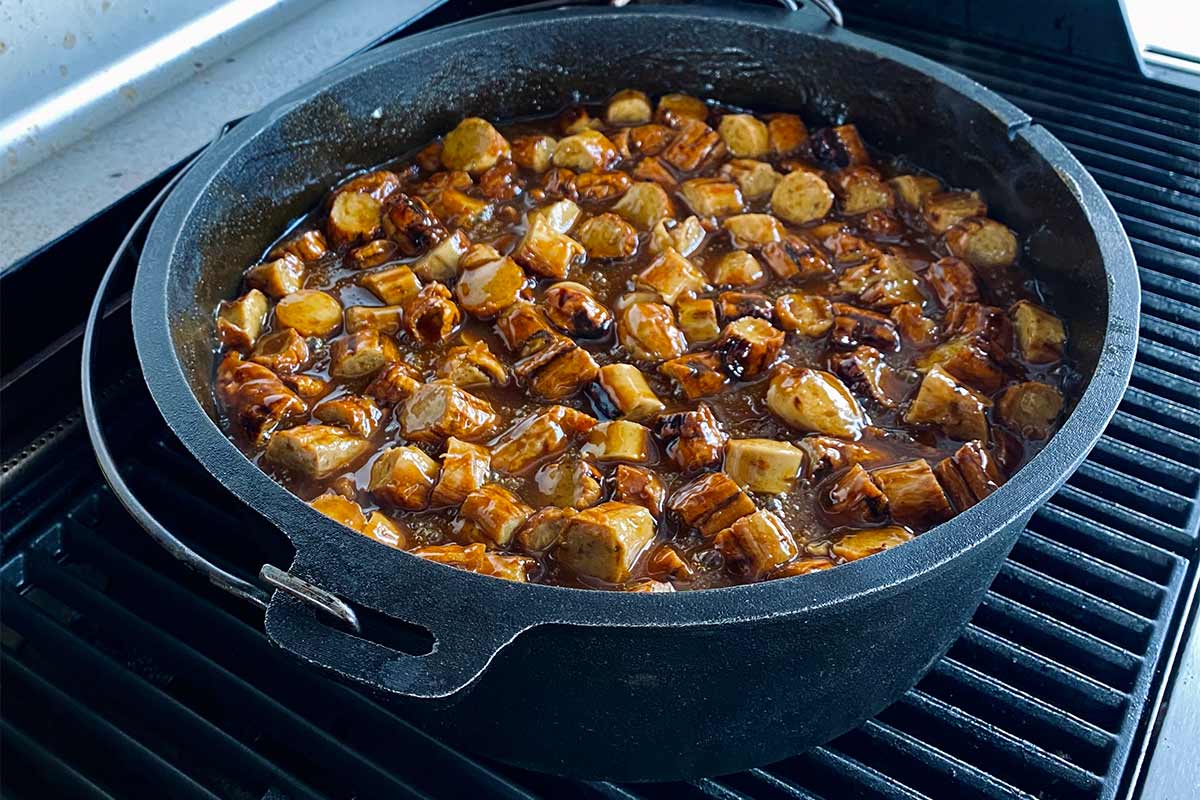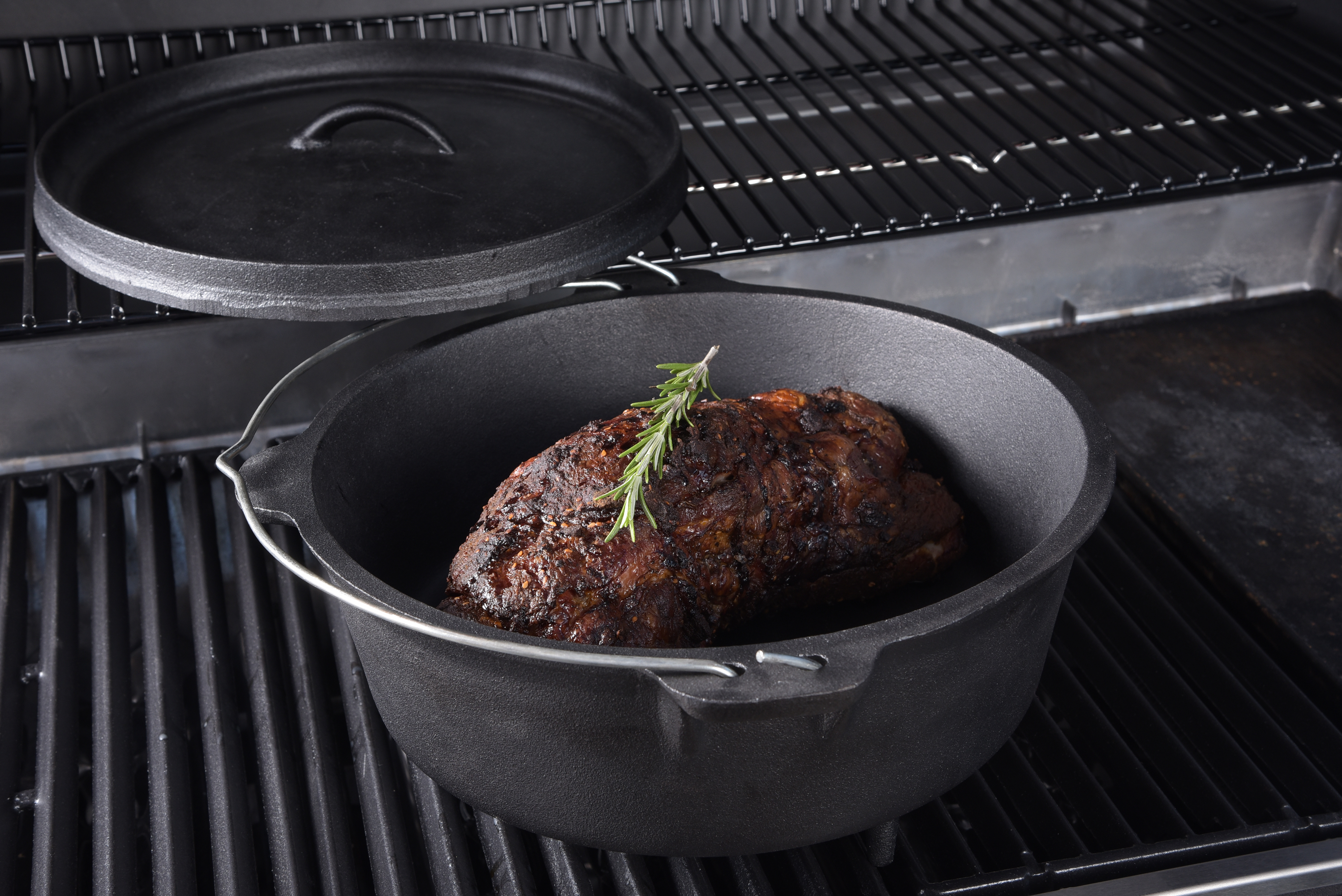 Der SANTOS Gusstopf ist ein absolutes Must-Have für alle Grillfans. Mit seinen hervorragenden Hitzeeigenschaften und seiner vielseitigen Einsatzmöglichkeit ist er sowohl drinnen als auch draußen, im Feuer oder auf den Kohlen, der ideale Begleiter für die schonende Zubereitung und gleichmäßige Garung verschiedenster Gerichte.