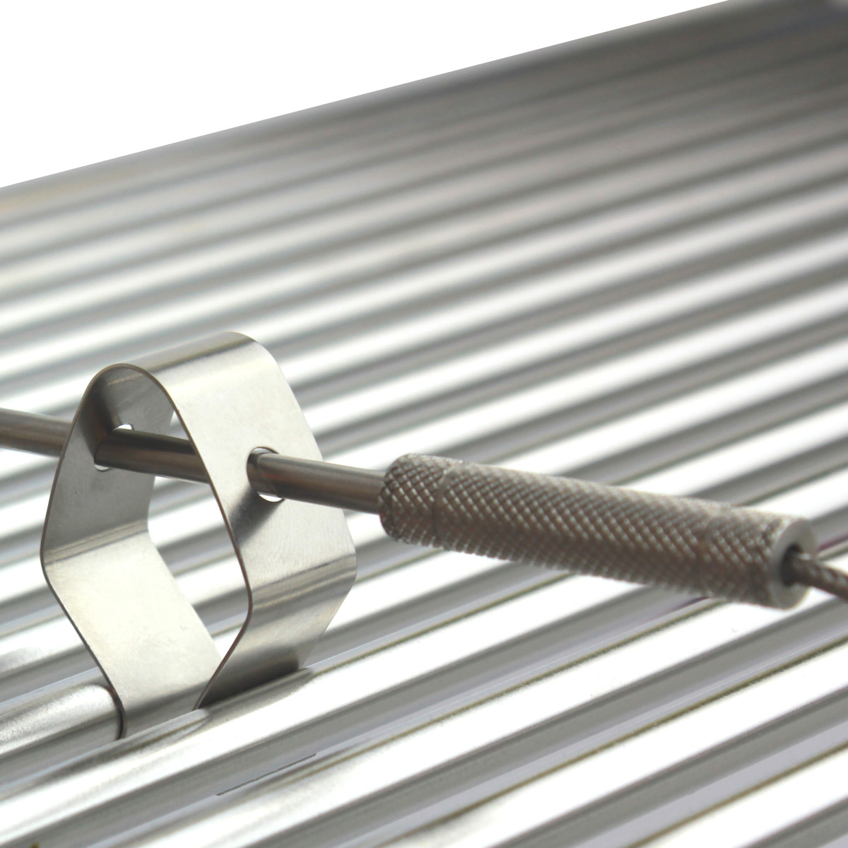 Der Clip hält auf runden, dreieckigen, flachen und geschwungenen Grillrosten aus allen Materialien. Die Sprossen des Grillrosts sollten mindestens 6 mm auseinander liegen, um den Clip ohne Probeme zu positionieren. Der maximale Abstand liegt bei 24 mm.Einfache Anwendung, große Wirkung