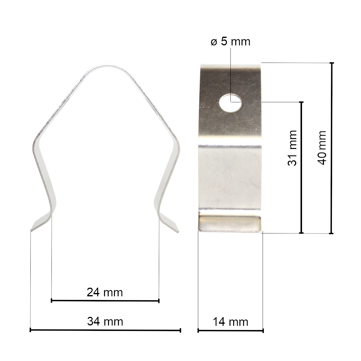 Maße: 34 x 14 x 40 mm Lochgröße: Ø 5 mm Material: Edelstahl