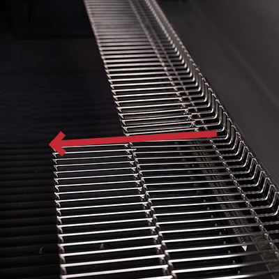 Die Roste aus Gusseisen heizen besonders gut auf und geben die Hitze an das Grillgut weiter. Die einzelnen Roste lassen sich nach Bedarf einfach wenden oder herausnehmen. Durch die spezielle V-Form hat der Grillrost zwei unterschiedliche Seiten zum Grillen. Die eine Grillseite der Gussroste ist mit Rillen versehen, in denen sich Fett, Öl und Grillsaft sammelt. Das Grillgut hat eine größere Auflagefläche und wird intensiver im Geschmack. Besonders für kleines Grillgut ist die Seite mit den Rillen gut geeignet. Die andere Seite ist keilförmig und ermöglicht das perfekte Branding im Fleisch.