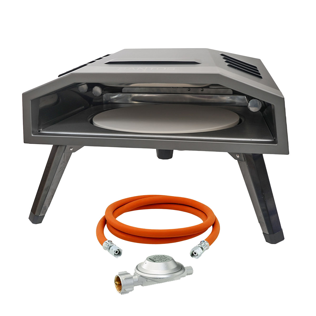 Der neue SANTOS Pizzaofen O-160 B in Schwarz ist die ideale Ergänzung für Eure Außenküche. Mit 7,5 KW Heizleistung erreicht Ihr ideale Temperaturen zum Backen von knusprigen Pizzen. Der im Lieferumfang enthaltene Pizzastein mit 37 cm Durchmesser reicht für eine große Pizza, die Ihr nach Belieben belegen könnt.