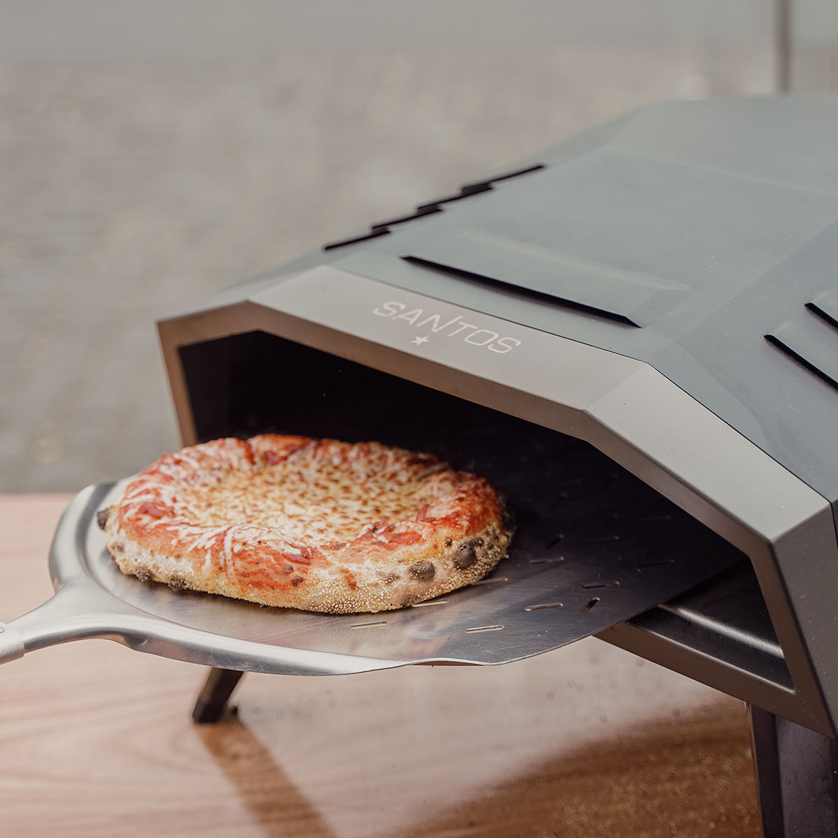 Durch das durchdachte Design des Pizzaofens gelangt die Hitze gleichmäßig vom Fokuspunkt im hinteren Bereich des Pizzaofens nach vorne und backt die Pizza so gleichmäßig aus. In Verbindung mit dem einzigartigen SANTOS Drehteller backt Ihr Eure Pizza absolut gelingsicher.