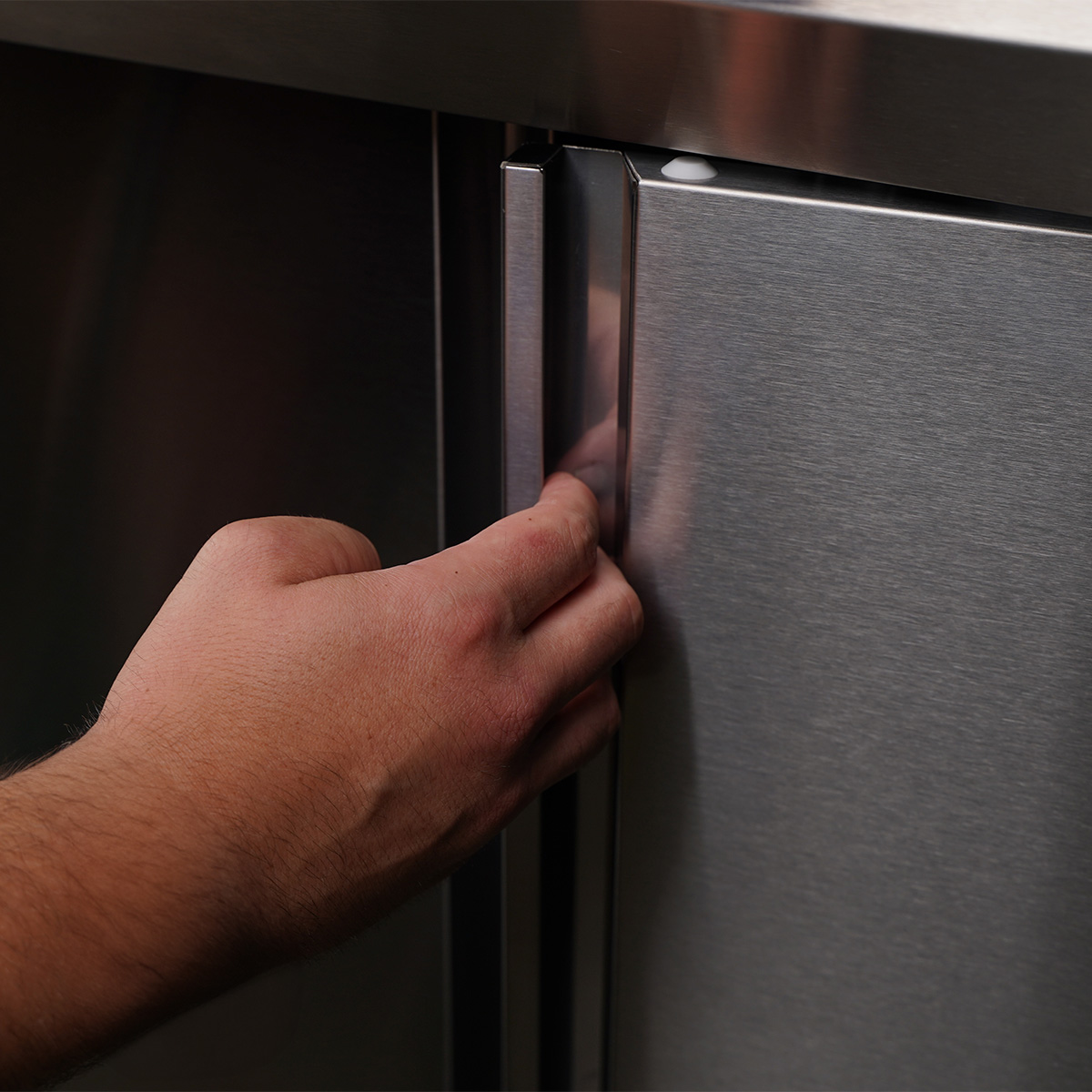 - Unterschrank in angesagtem Invisible Look: Türen mit vertikalen Griffmulden