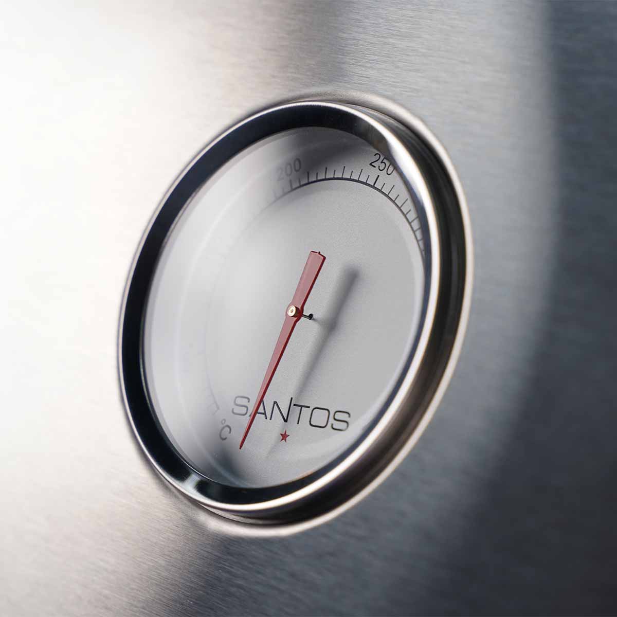 Die massive Ausstattung der SANTOS S-Serie mit langlebigem Aluminiumguss Gehäuse, Edelstahl Grillwanne und doppelwandiger Edelstahlhaube hat für die Pro-Modelle ein funktionales Upgrade erhalten: Mit den verlängerten Seitenteilen der Grillierkammer und dem verkleinerten hinteren Deckelspalt wird der Temperaturverlust effektiv minimiert. Das sorgt für konstante Temperaturen und eine zuverlässige und gleichmässige Grillierleistung auf der gesamten Grillfläche.