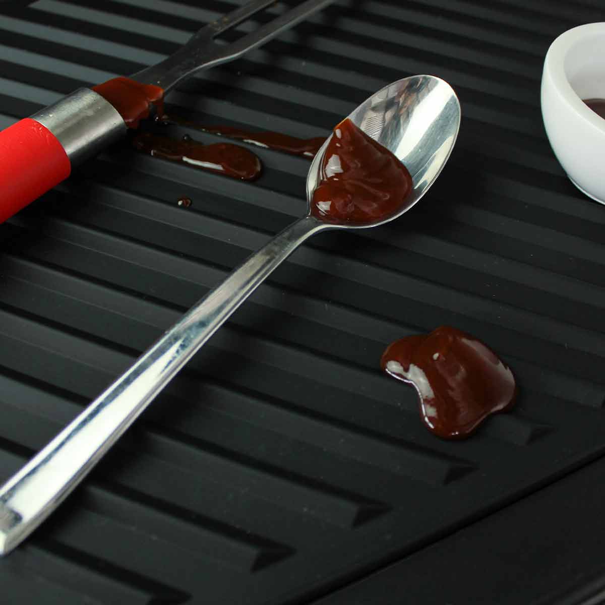 Die Silikonmatte besteht aus einem rutschfesten Material und ist speziell für den Einsatz auf der Seitenablage eures Grills entwickelt worden. Durch die Riffelung der Matte liegt euer Grillzubehör nicht im Sud und bleibt somit sauber und hygienisch.