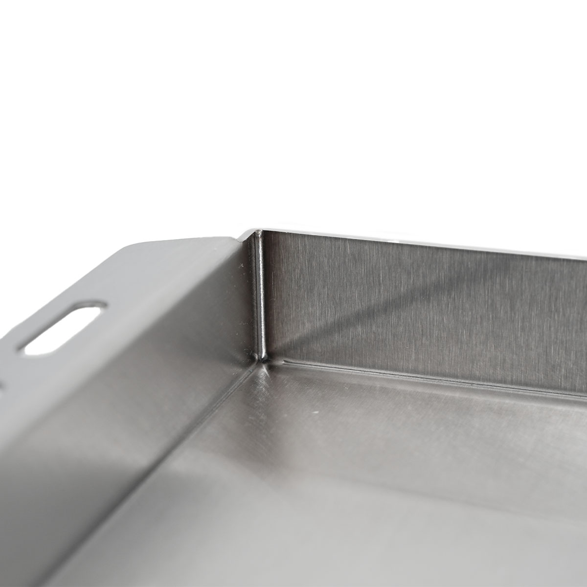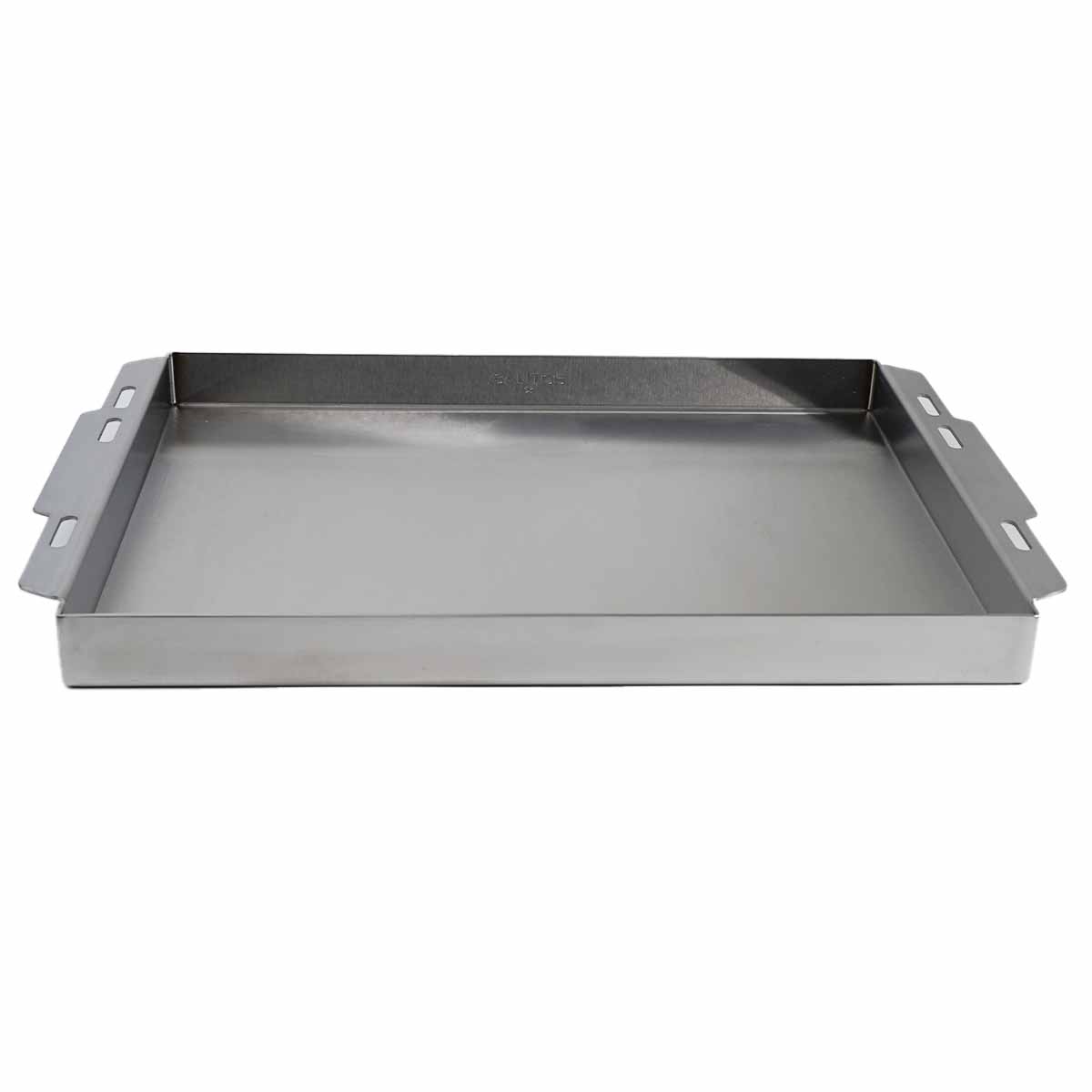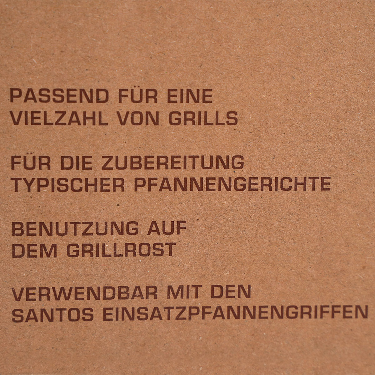Nahezu all Eure Grillideen könnt Ihr mit nur einem Zubehörteil verwirklichen: Die SANTOS Universal-Plancha aus Edelstahl ermöglicht es Euch, sowohl Fleisch als auch Fisch, Gemüse und andere Beilagen auf Eurem Gasgrill zuzubereiten. Mit einer Länge von 52 cm und einer Tiefe von 35 cm eignet sich die Einsatzpfanne auch für größeres Grillgut. Ihr grillt gerne japanische Gerichte? Die SANTOS Universal-Plancha lässt sich zur Zubereitung von asiatischen Grillgerichten auch als Teppanyaki-Grillplatte verwenden. Für mediterrane Grillgerichte ist sie ebenfalls perfekt geeignet, darauf lassen sich unwiderstehliche Gerichte mit Gemüse und Schalentieren zubereiten.Mit SANTOS Griffen kombinierbar