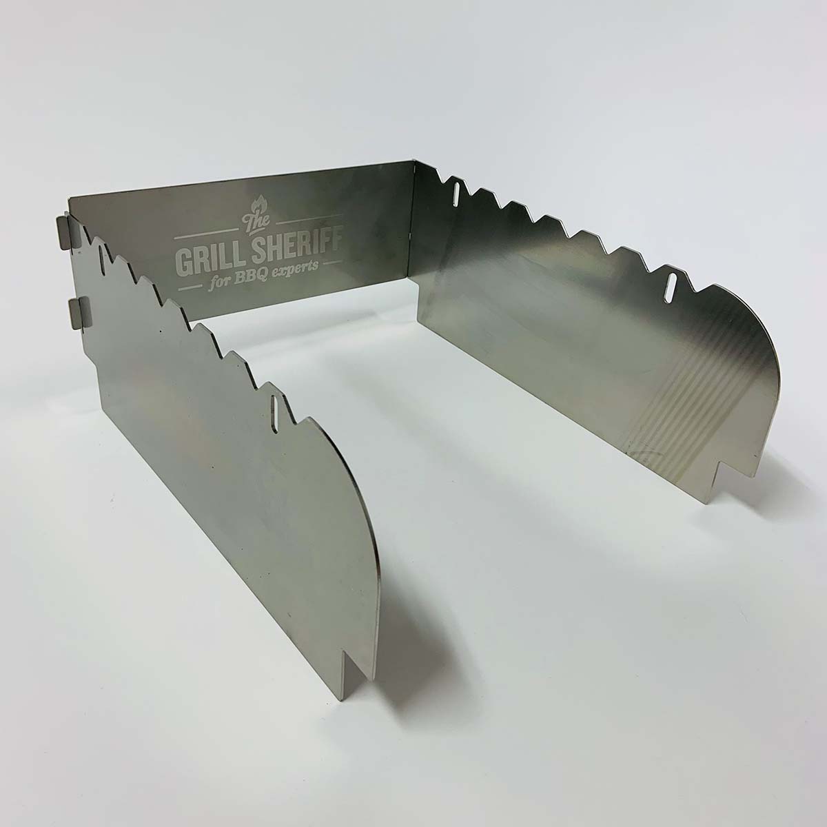Rosthalterungs-Funktion: In die beiden Lochstanzungen an den oberen Längskanten können zwei Spiesse (nicht im Lieferumfang) eingeschoben werden, welche als Träger des Sizzle-Zone-Grillrost dienen. Somit kann dieser auf rund 8 cm über die Hitzezone erhöht werden. Rosthalterungs-Funktion: In die beiden Lochstanzungen an den oberen Längskanten können zwei Spiesse (nicht im Lieferumfang) eingeschoben werden, welche als Träger des Sizzle-Zone-Grillrost dienen. Somit kann dieser auf rund 8 cm über die Hitzezone erhöht werden.