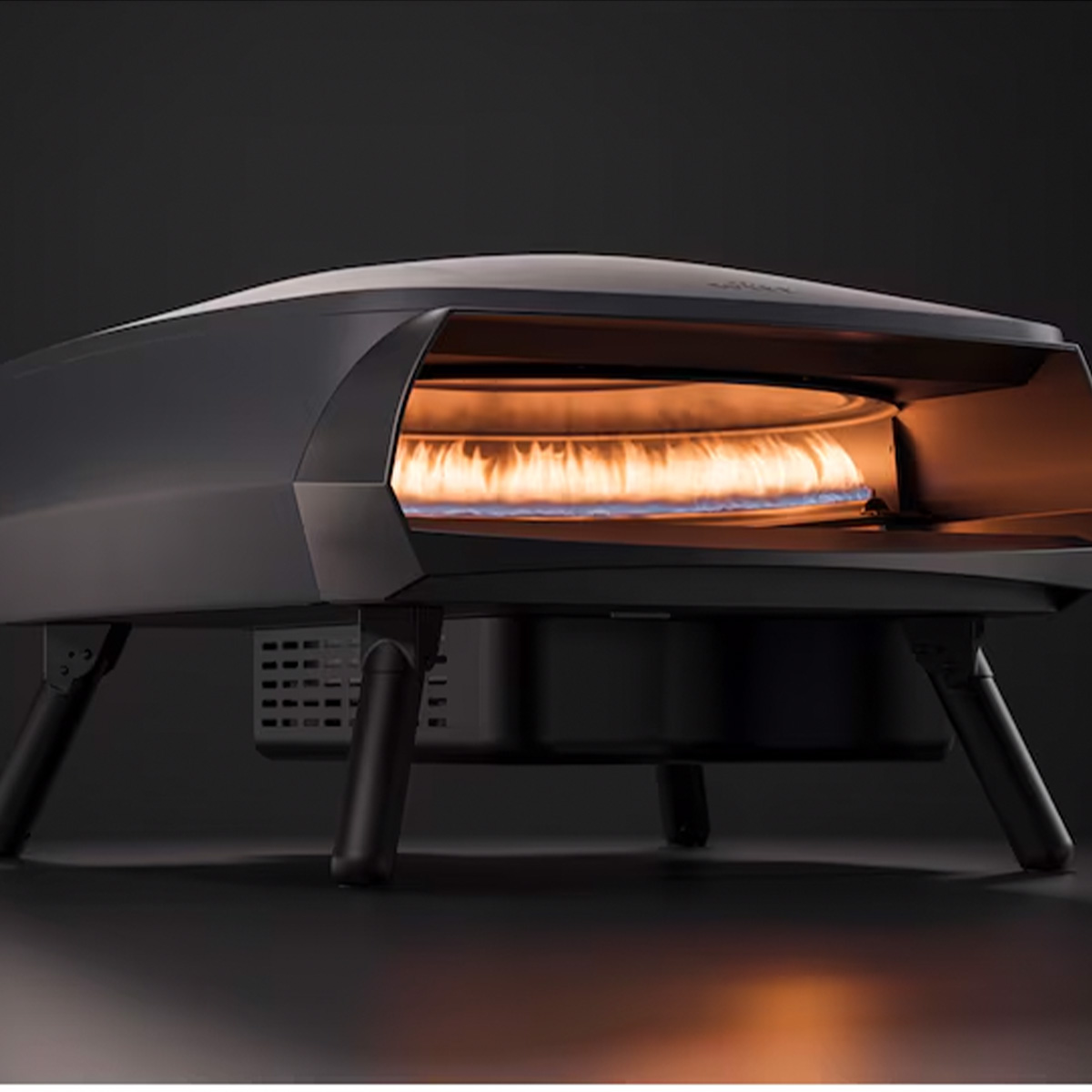 Ein batteriebetriebener, drehbarer Pizzastein und der extra Booster-Brenner sorgen für ein gleichmäßiges Backen und eine perfekte, knusprige Pizzakruste.